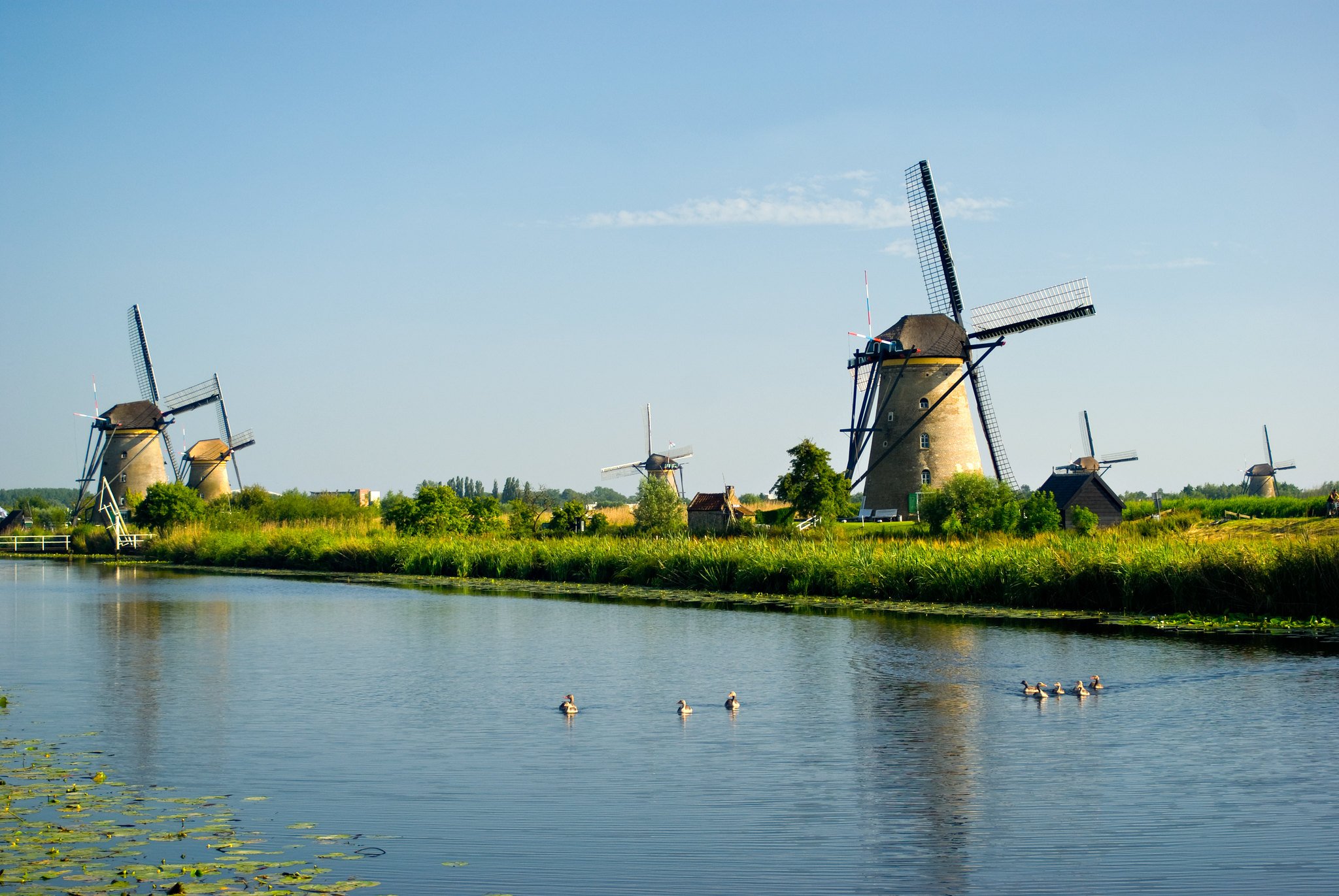หมู่บ้านกังหันคินเดอร์ไดค์ (Kinderdijk) หมู่บ้านกังหันลมแห่งนี้อยู่ในฮอลแลนด์ใต้ ประเทศเนเธอร์แลนด์ ที่นี่เป็นหมู่บ้านกังหันลมเก่าแก่ที่ใหญ่ที่สุดในเนเธอร์แลนด์ และได้รับการขึ้นทะเบียนเป็นมรดกโลกด้วย ในศตวรรษที่ 13 คลองกั้นน้ำ Alblasserwaard เกิดปัญหามากขึ้นเรื่อยๆ เนื่องจากมีการขุดคลอง weteringen เพื่อระบายน้ำในคลองกั้นน้ำทำให้ดินทรุดจนเป็นปัญหา จึงเริ่มสร้างกังหันลมมาวิดน้ำขึ้นในปี 1740 แม้จะมีไม่มีคนอาศัยอยู่แล้ว แต่กังหันลมเหล่านี้ ก็เป็นอีกหนึ่งไฮไลท์ที่ดึงดูดนักท่องเที่ยวเข้ามาเที่ยวชม